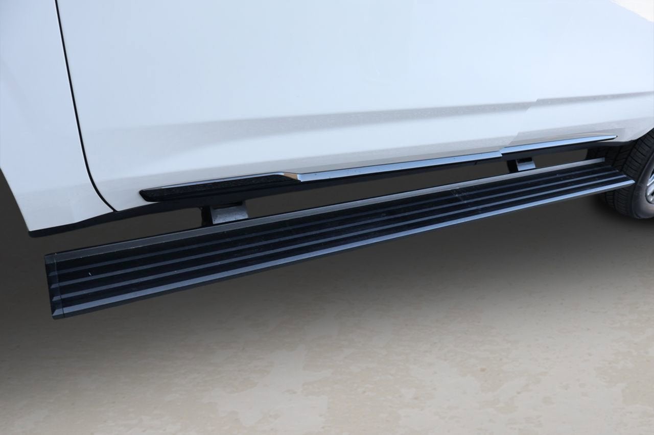 - Power-retractable assist steps with LED perimeter lighting